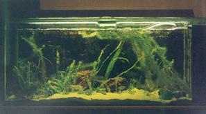 Quelle joie d'aller à la crique du coin, épuisette à l'épaule, comme d'autres vont au magasin d'aquariophilie d'à côté. Un bon coup d'épuisette et c'est pas moins de 20 yayas d'un coup qui finissent dans le seau (Hemigrammus ocellifer, Moenkhausia oligolepis, Pseudopristella simulata ). Quand on en a une cinquantaine, on rentre à la maison (à 2 euros pièce en métropole, l'affaire est vite intéressante). J'y rajoutais par la suite quelques splendides killis (Rivulus geayi) et 4 ou 5 Nannacara aureocephalus qui, bien que moins colorés que leurs cousins N. annomala, sont tout de même très attrayants. Le bac fut tout aussi rapidement planté : Cabombas, élodées et Echinodorus ne manquent pas et la cueillette peut se révéler aussi passionnante que la pêche
